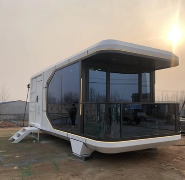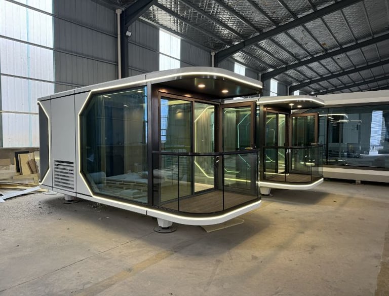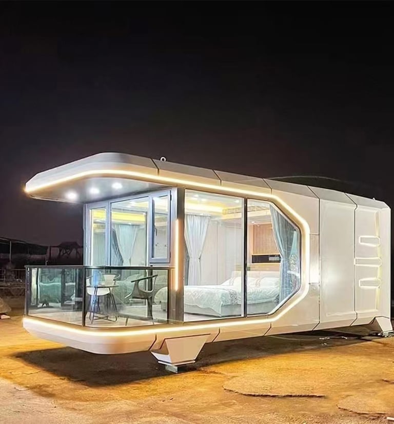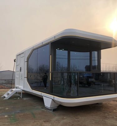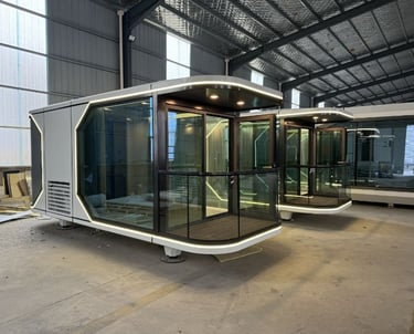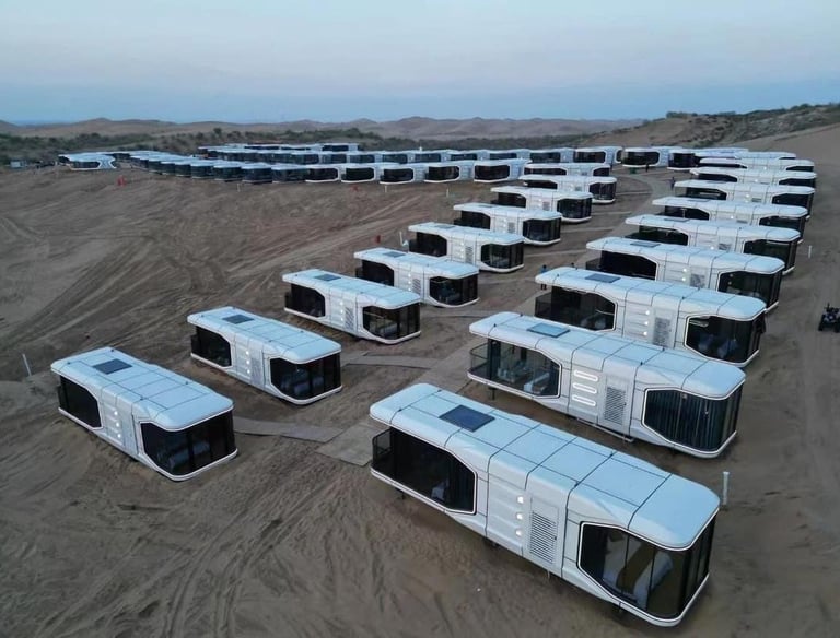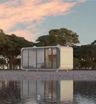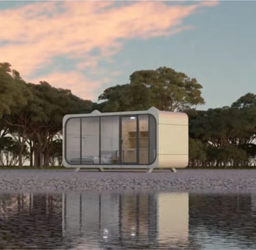 Cápsulas modernas full tecnología, para disfrutar de un estilo de vida simple, futurista y sostenible.